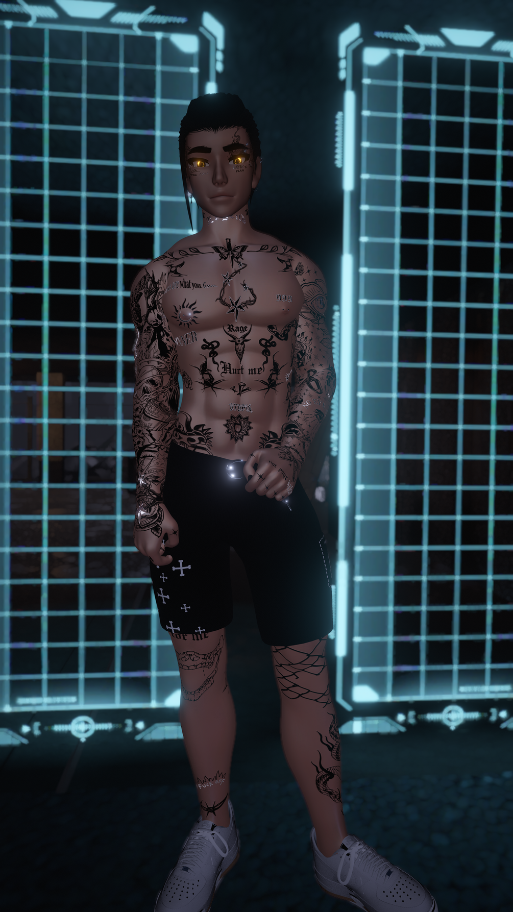 ♡ INCLUDED IN PACKAGE texture maps: (body) body with layered tattoos , 2 Emissions map, 1 Normal maps,1 MetallicGloss map, 1 unity package with custom settings