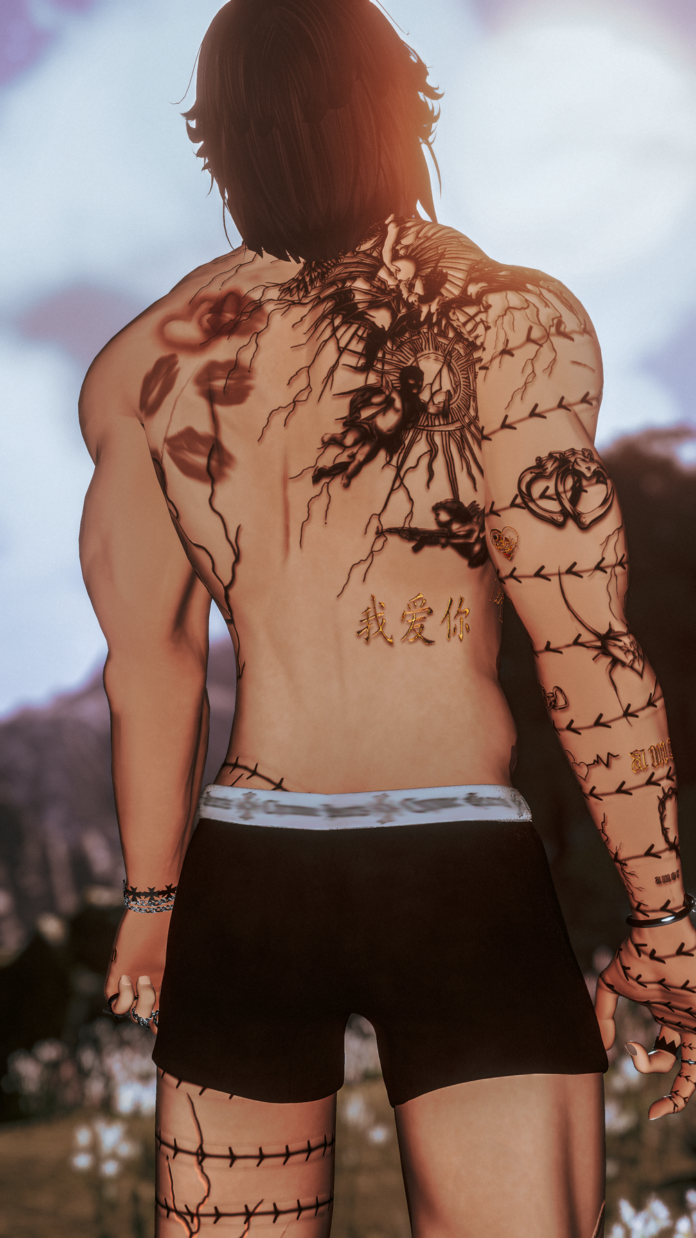 ♡ INCLUDED IN PACKAGE texture maps: (body) with layered tattoos , Emissions map, Normal maps, unity package with custom settings.