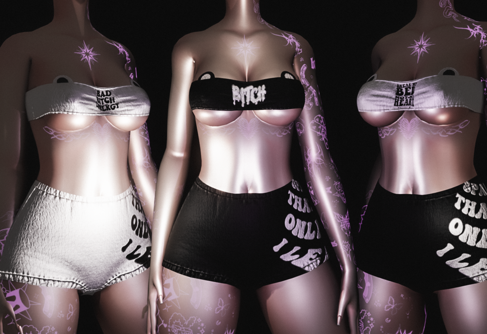 - a lot of different packages with different colors for bra and shorts. (base textures, normal maps)