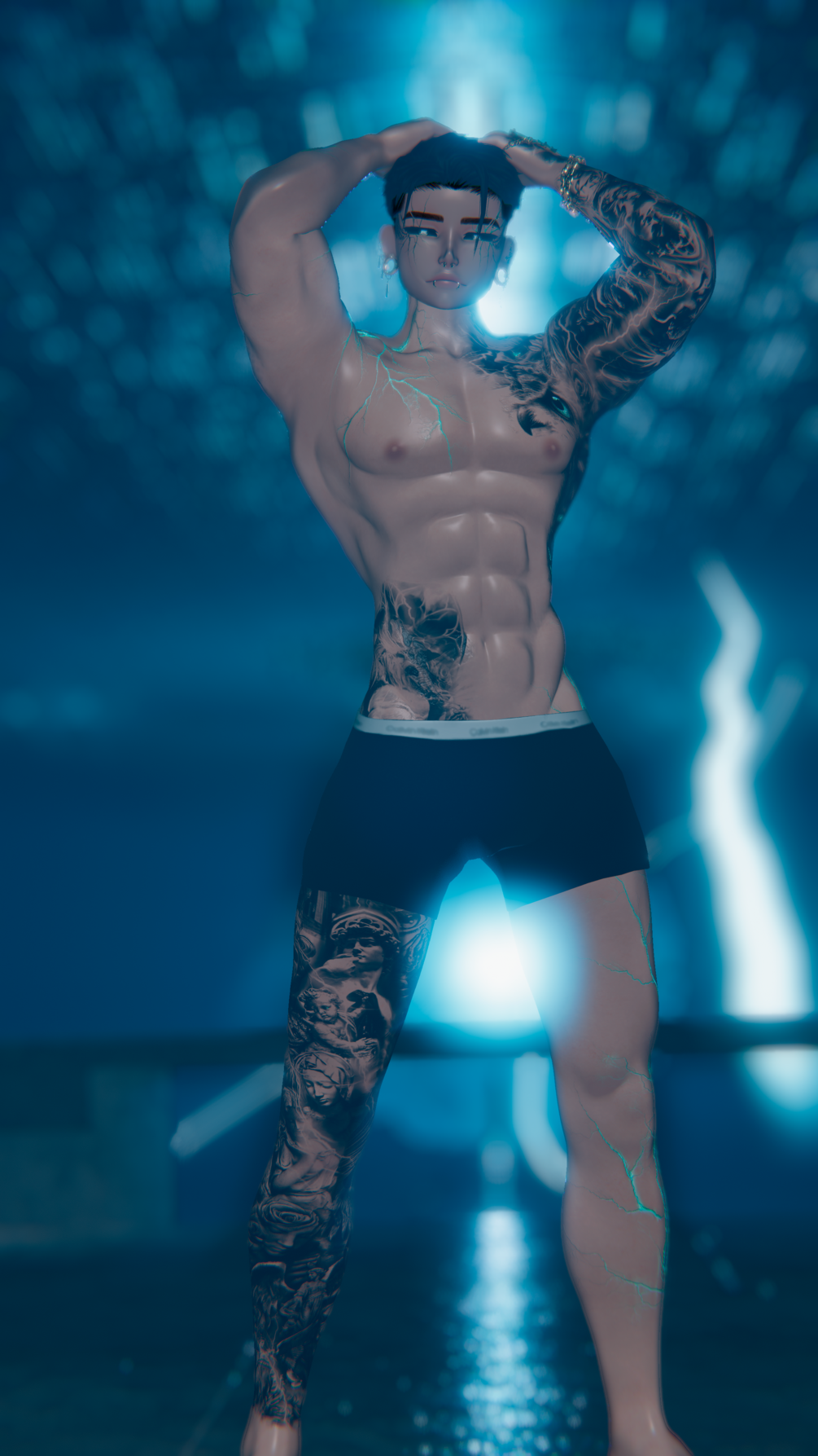 ♡ INCLUDED IN PACKAGE texture maps: (body) 2 body with layered tattoos WITH LIGHTING AND WITHOUT 4 Emissions map, 3 Normal maps,1 MetallicGloss map, 1 unity package with custom settings.