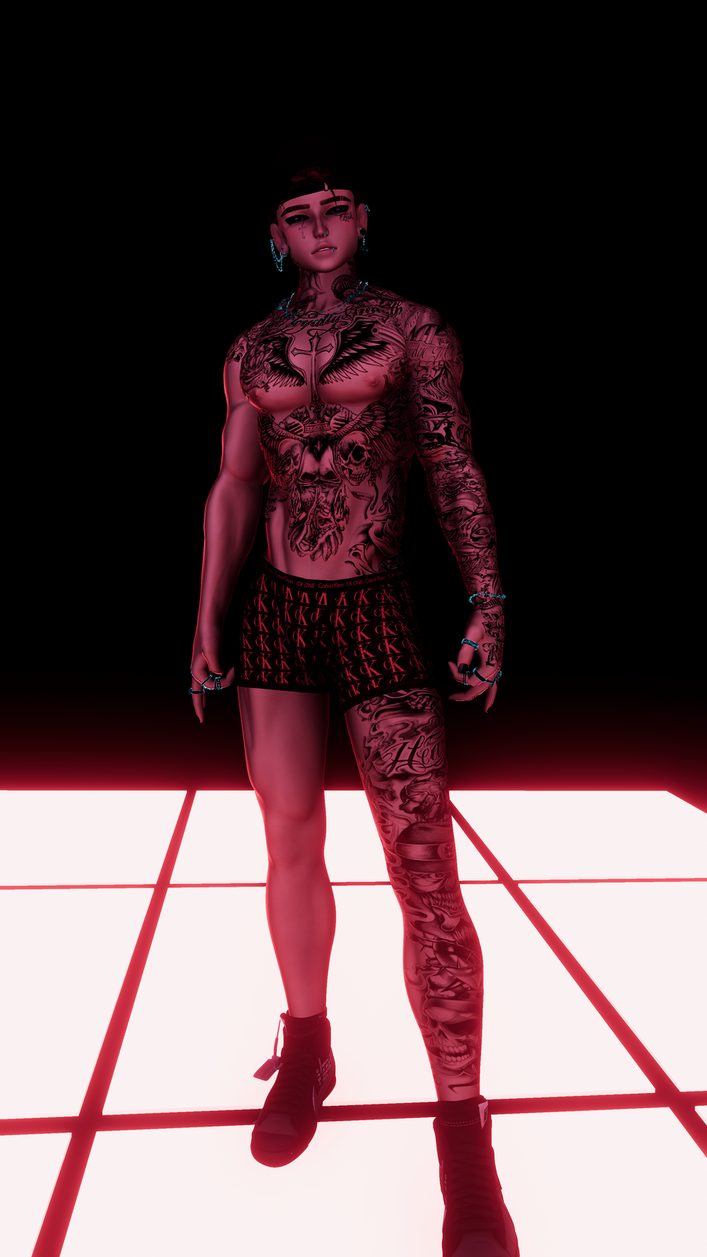 ♡ INCLUDED IN PACKAGE texture maps: (body) body with layered tattoos , 4 Emissions map, 1 Normal maps,1 MetallicGloss map, 1 unity package with custom settings.