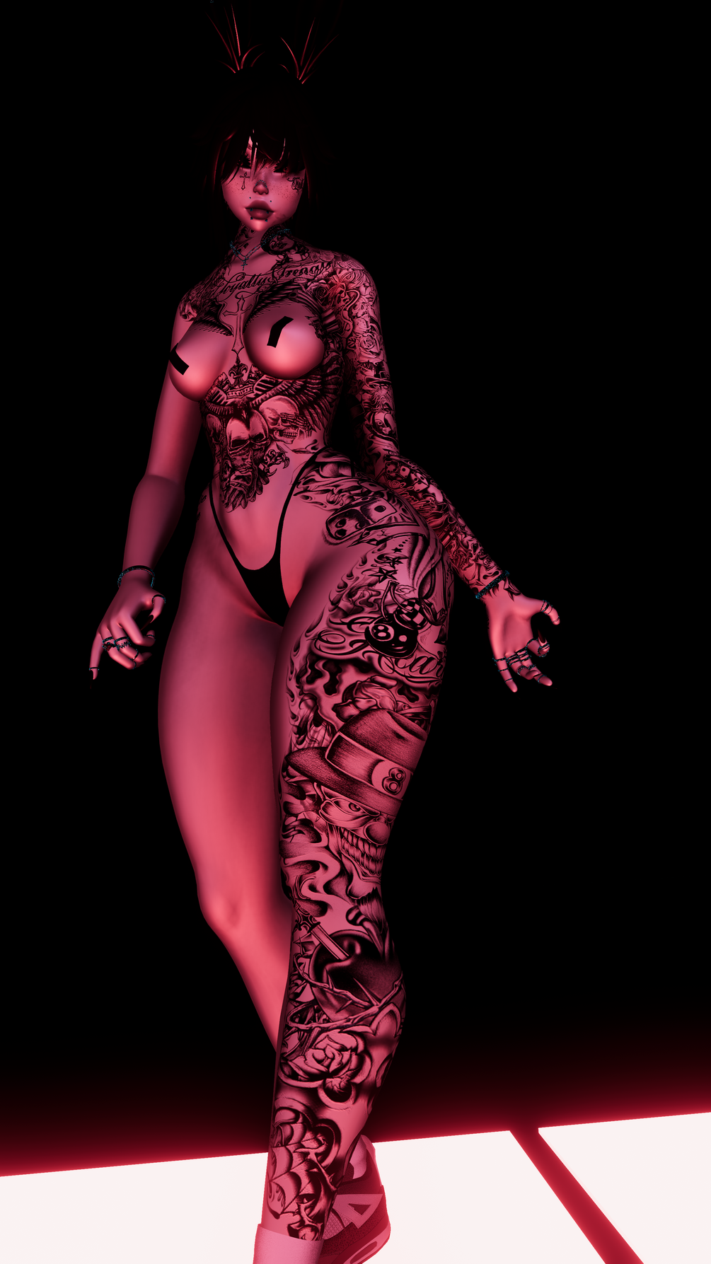 ♡ INCLUDED IN PACKAGE texture maps: (body) body with layered tattoos , 4 Emissions map, 1 Normal maps,1 MetallicGloss map, 1 unity package with custom settings.