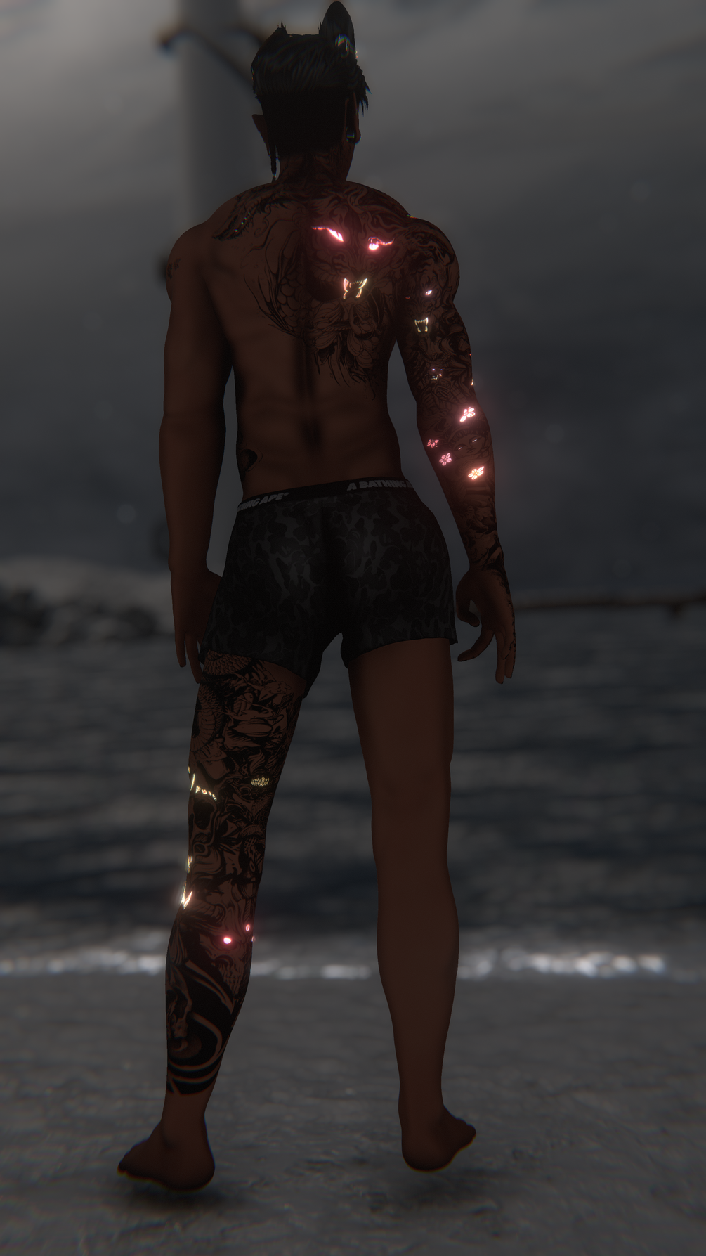 ♡ INCLUDED IN PACKAGE texture maps: (body) body with layered tattoos , 4 Emissions map, 1 Normal maps,1 MetallicGloss map, 1 unity package with custom settings